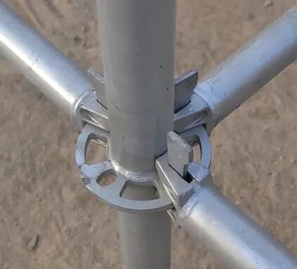 轮扣架:节点连接方式是同轴心承插,节点在框架平面内的连接。